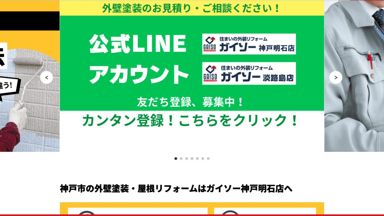 神戸市で外壁塗装をするなら、滝の茶屋駅から車で8分「ガイソー神戸明石店」にお任せください。